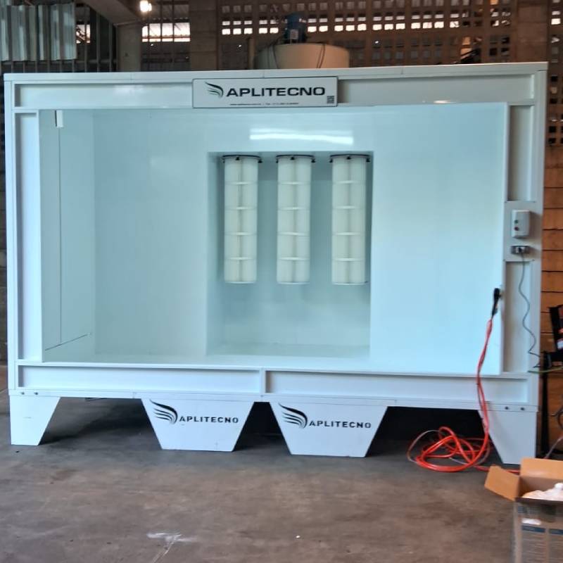 Projetada para máxima eficiência, praticidade e qualidade, a cabine de pintura Aplitecno para alta produção oferece tripla filtragem e filtros de cartucho de longa duração, garantindo um ambiente limpo, economia de tinta e alta produtividade.
